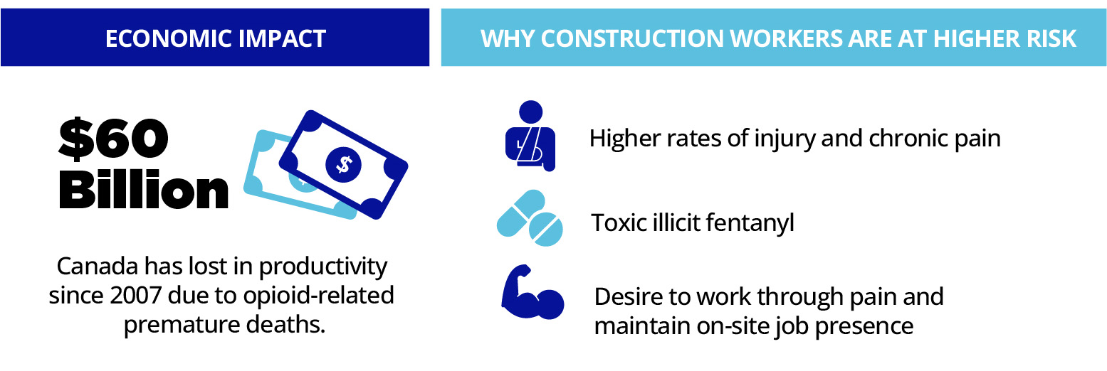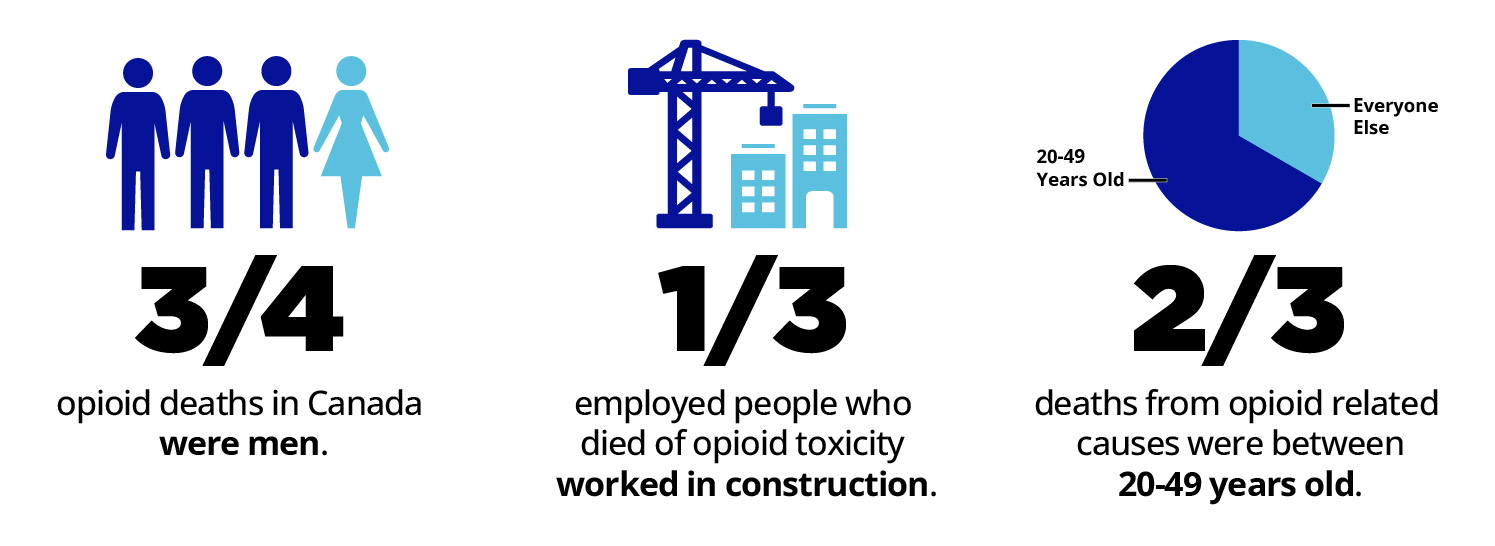• Men account for three-quarters of all opioid deaths in Canada. Construction remains a male-dominated field, making workers disproportionately vulnerable.